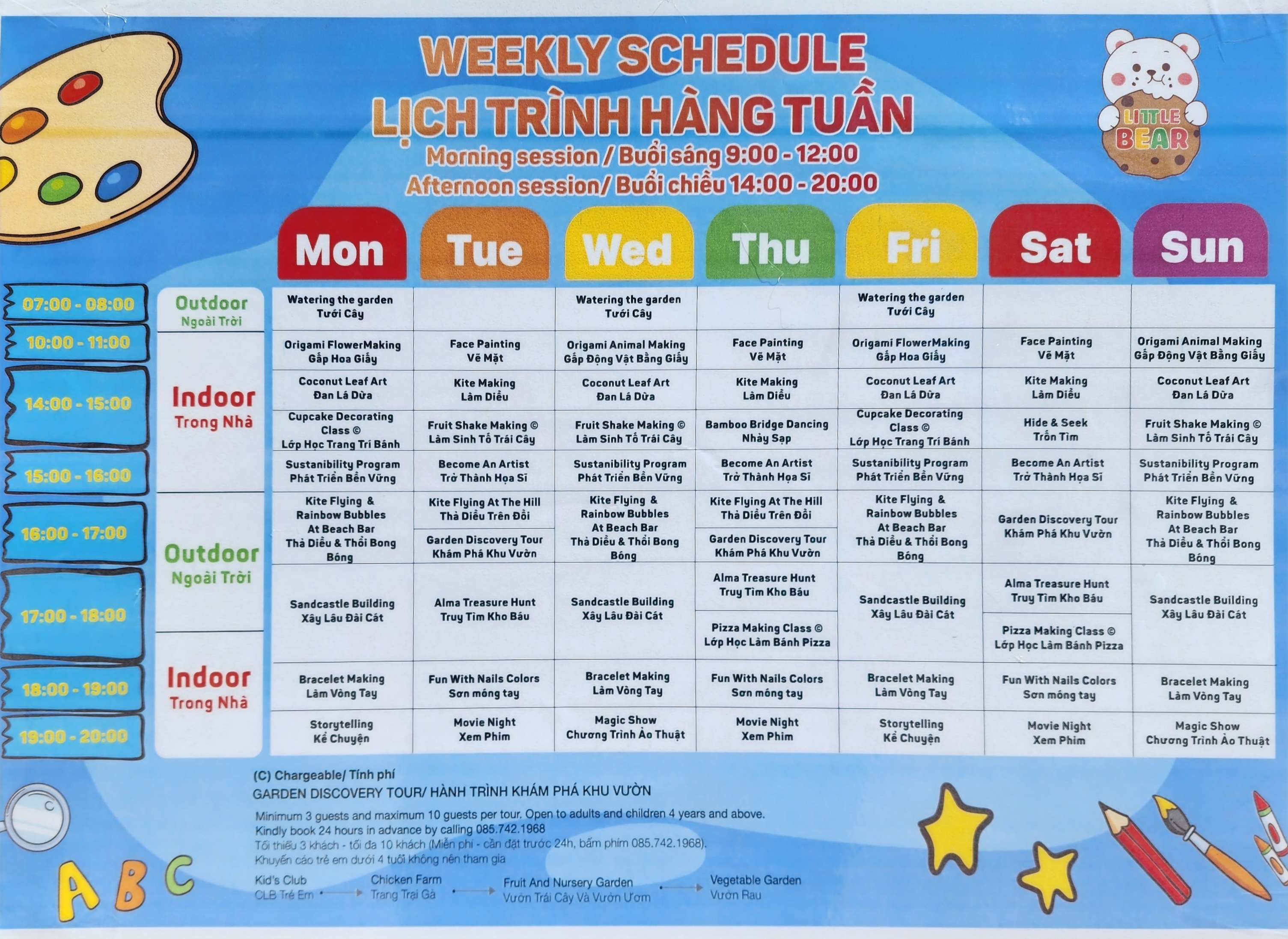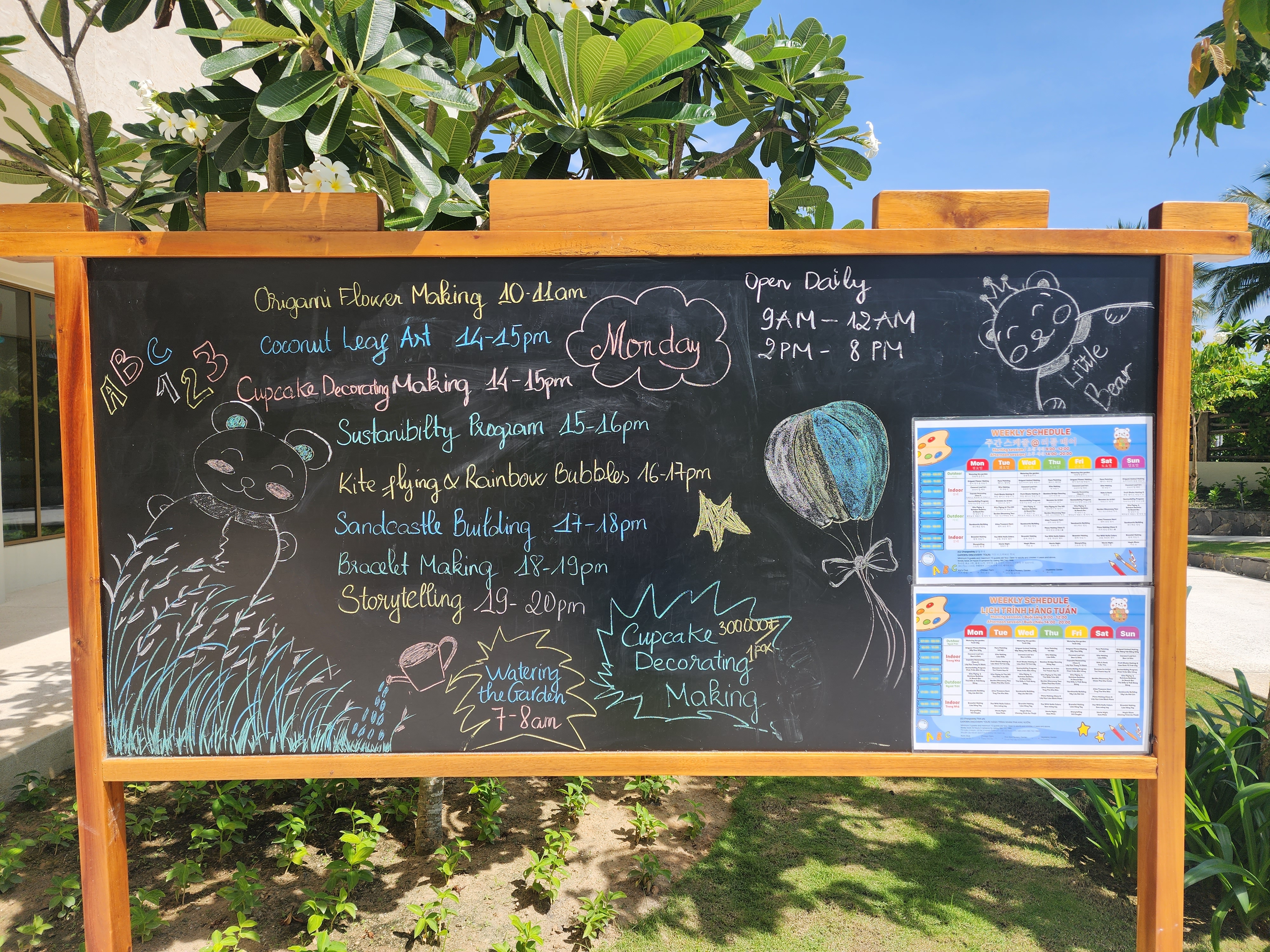 키즈클럽 앞에 가면 칠판에 프로그램과 시간, 비용이