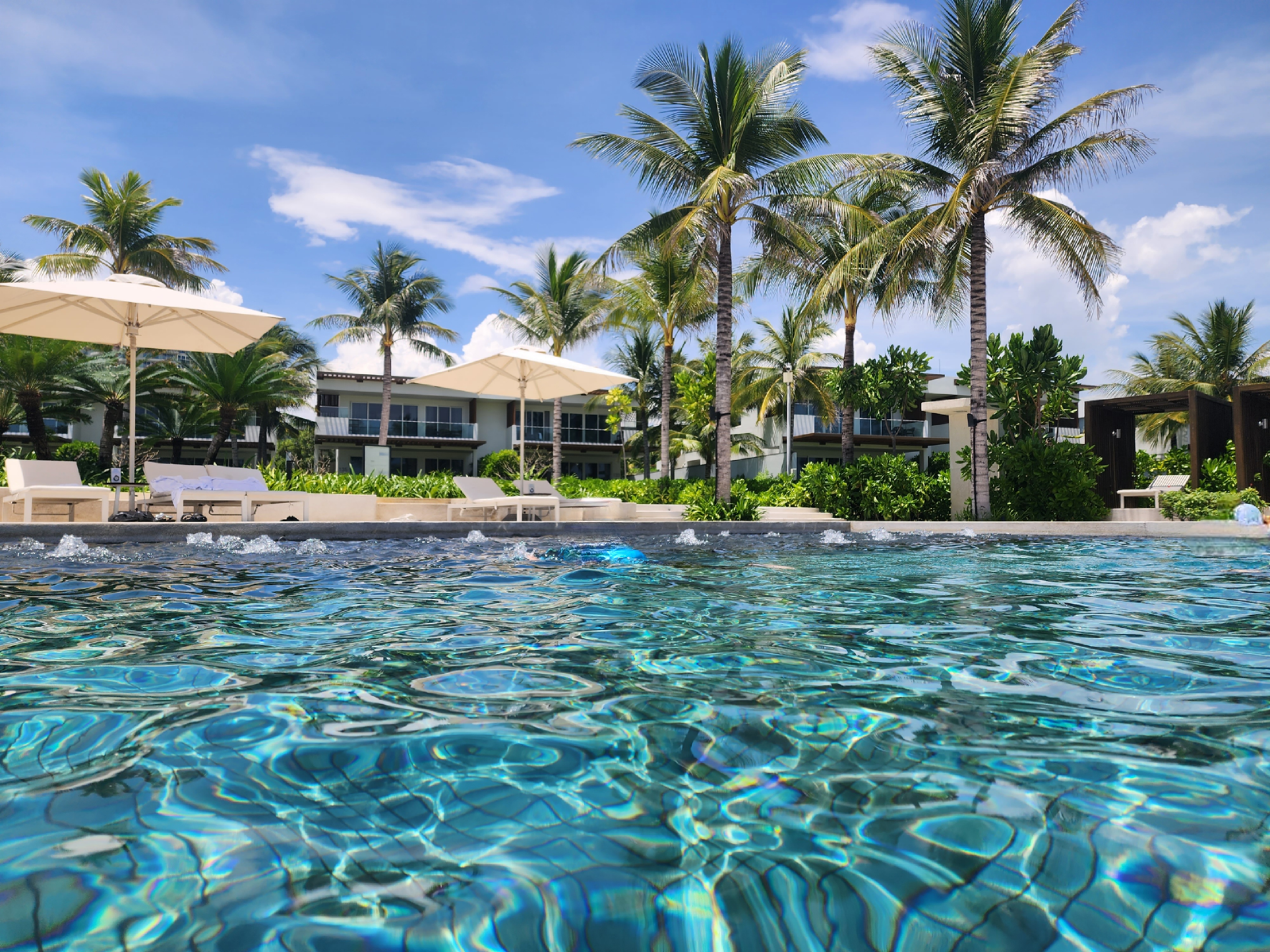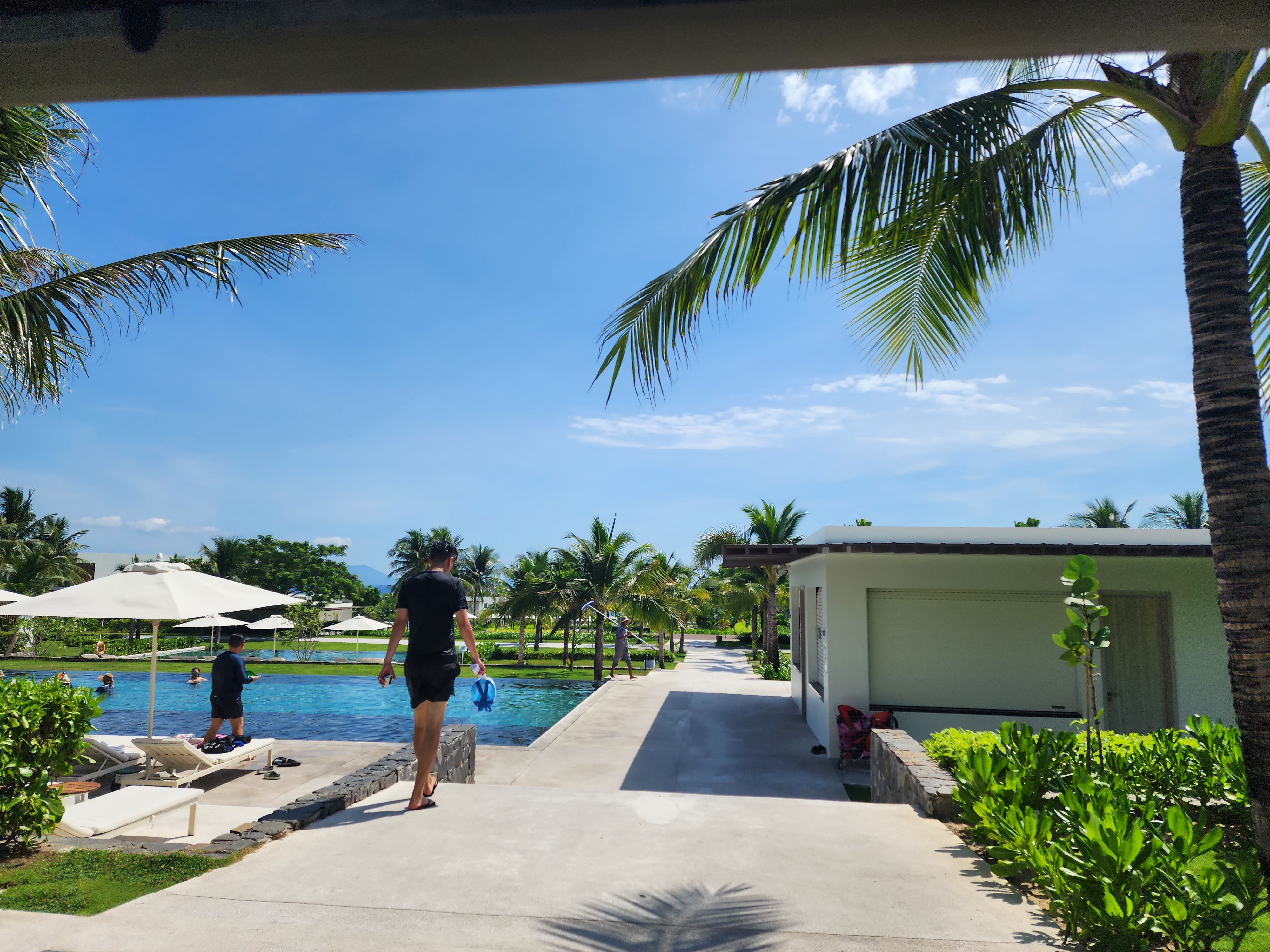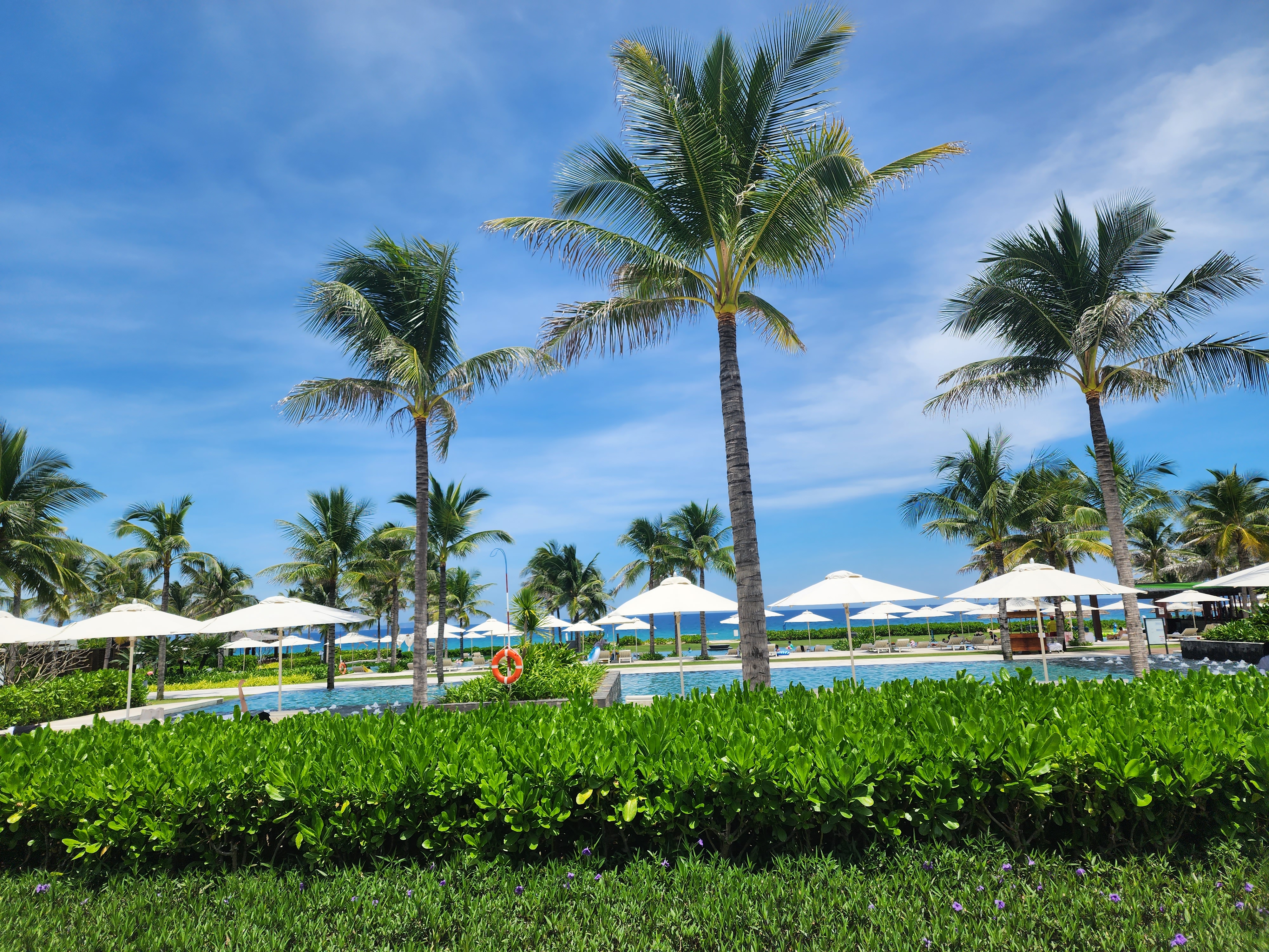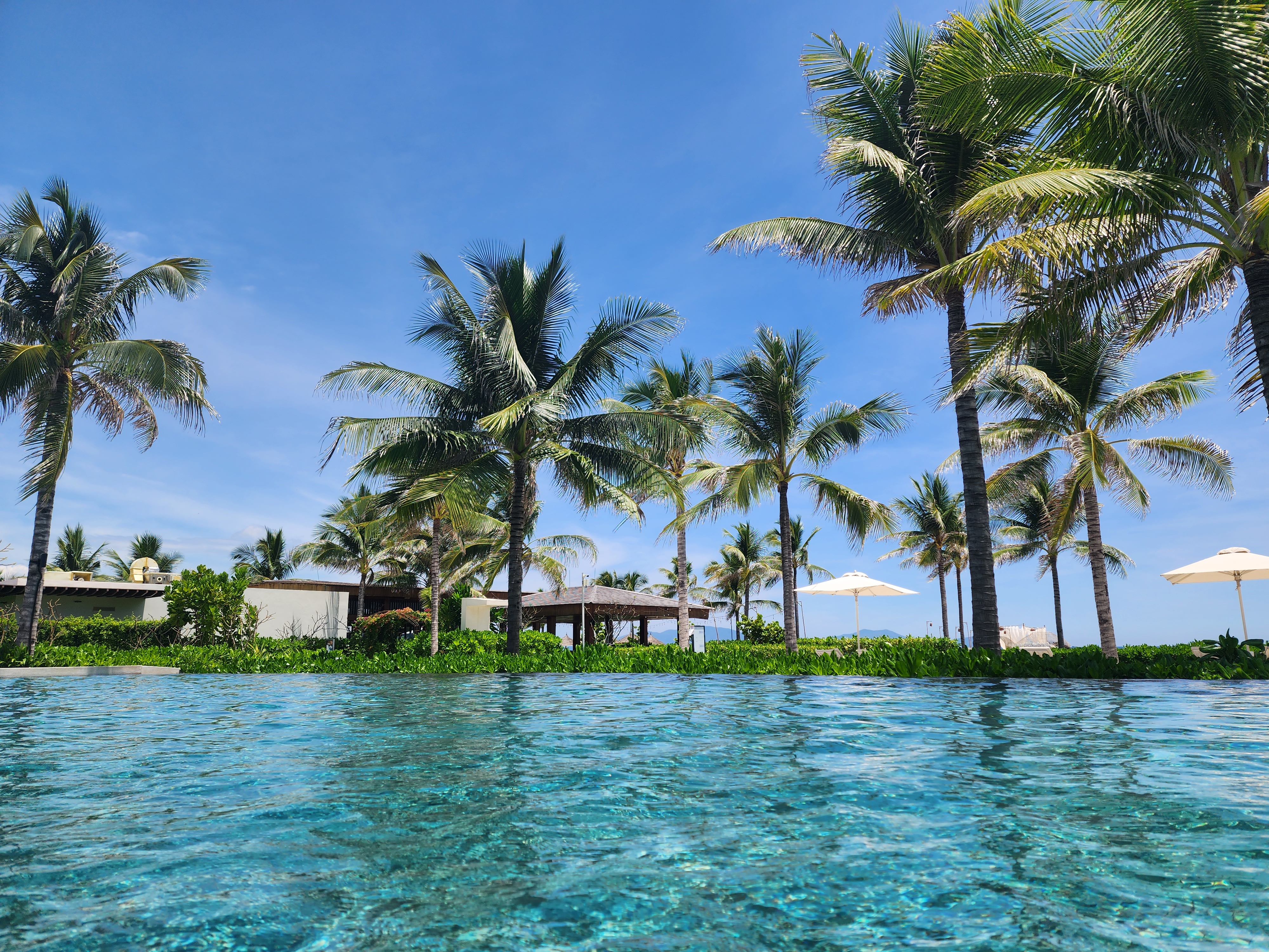 메인수영장에 도착하니 파란 하늘과 바다, 수영장