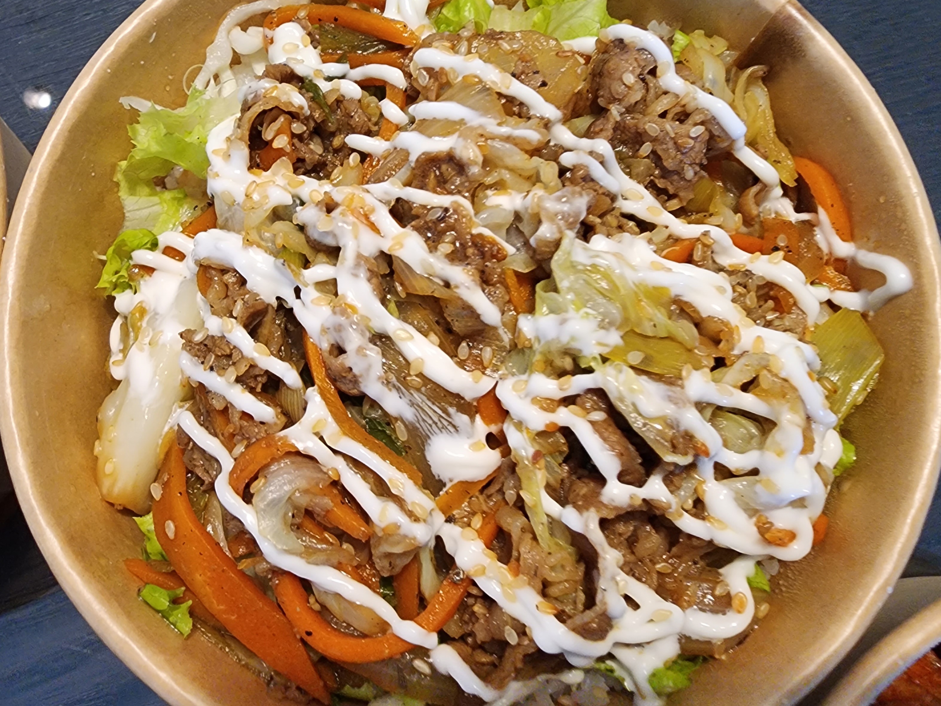 테라스에 있는 테이블에서 맛있게 한식으로 식사했어요.