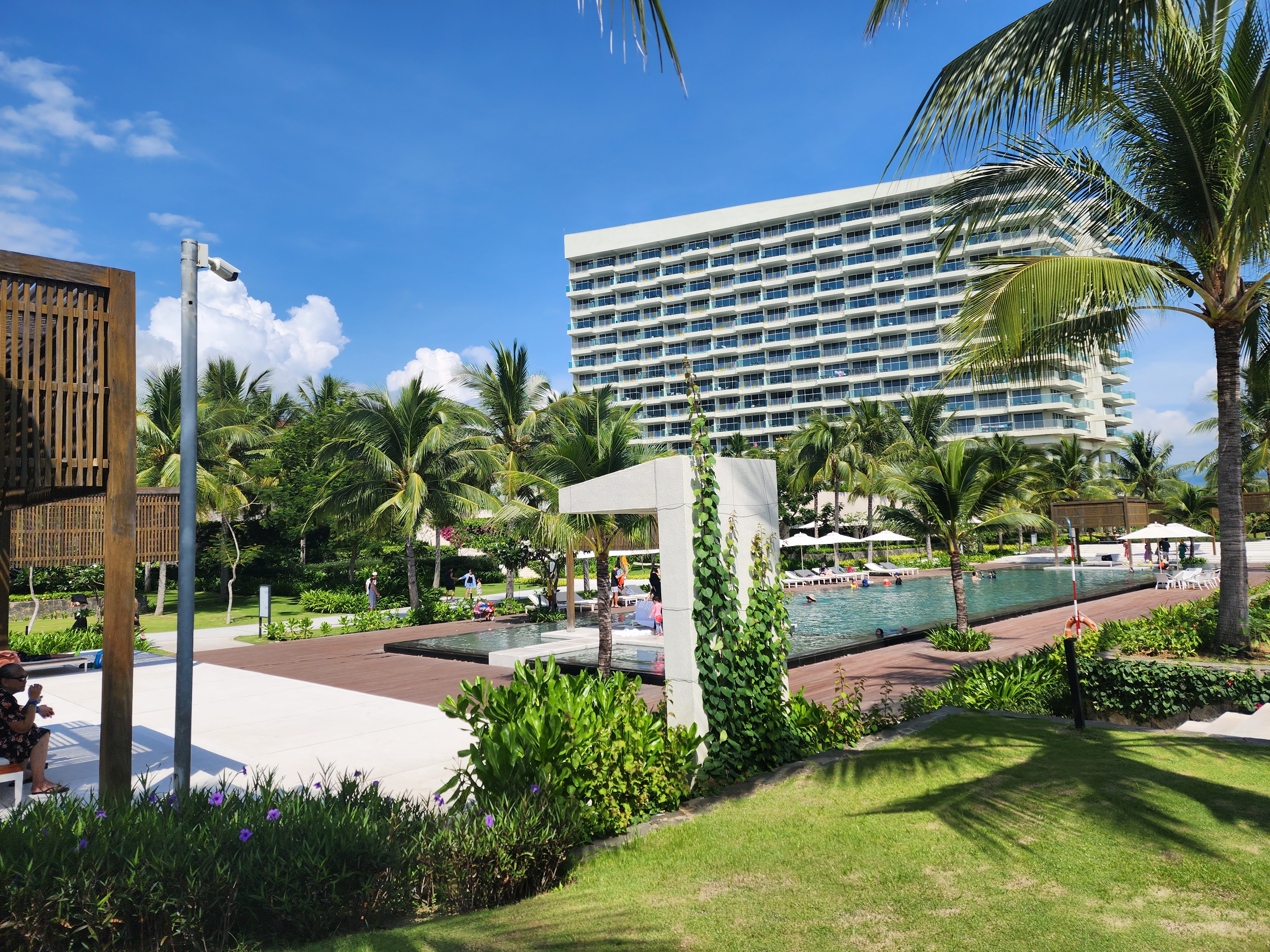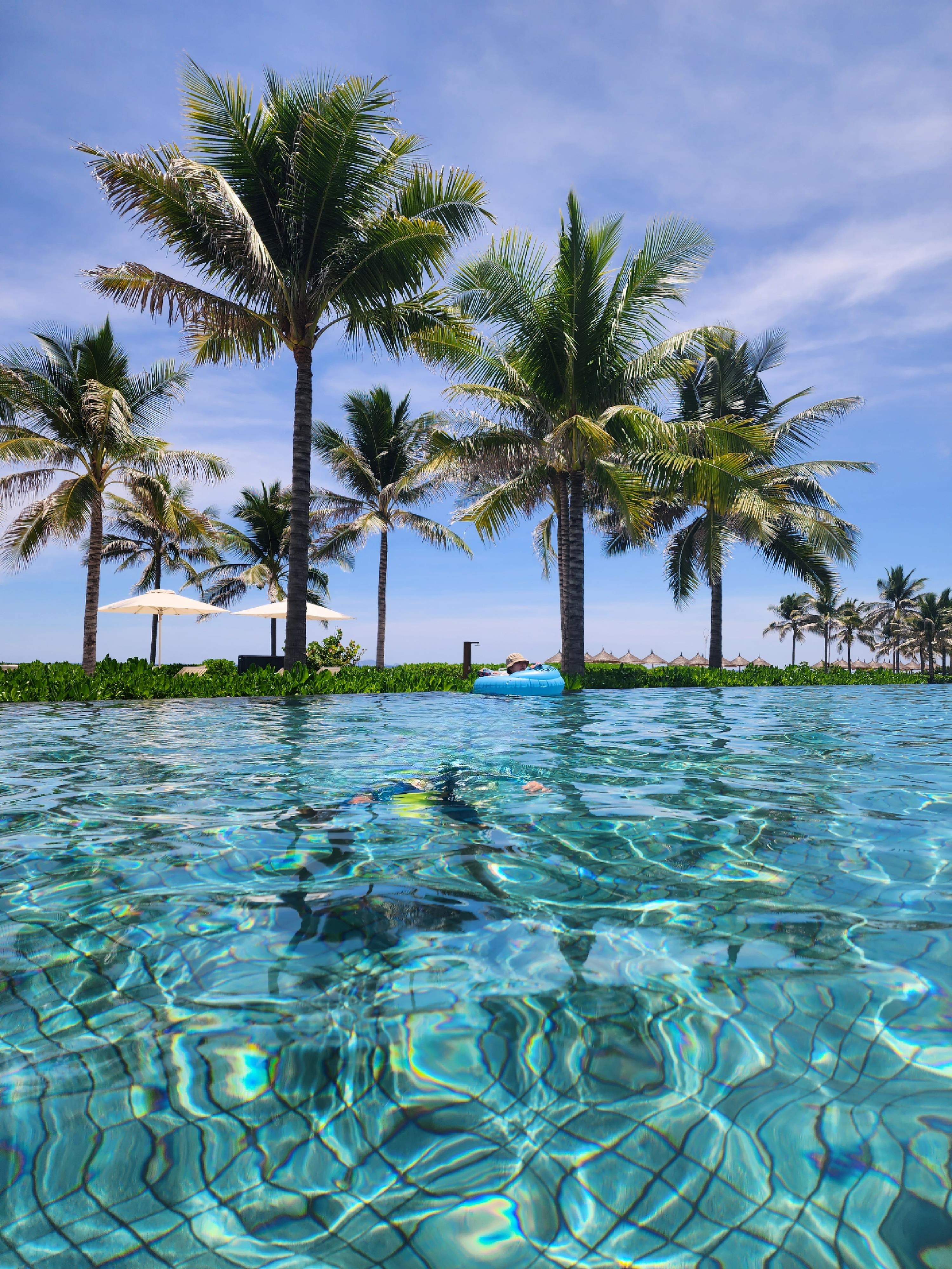 메인수영장에 도착하니 파란 하늘과 바다, 수영장