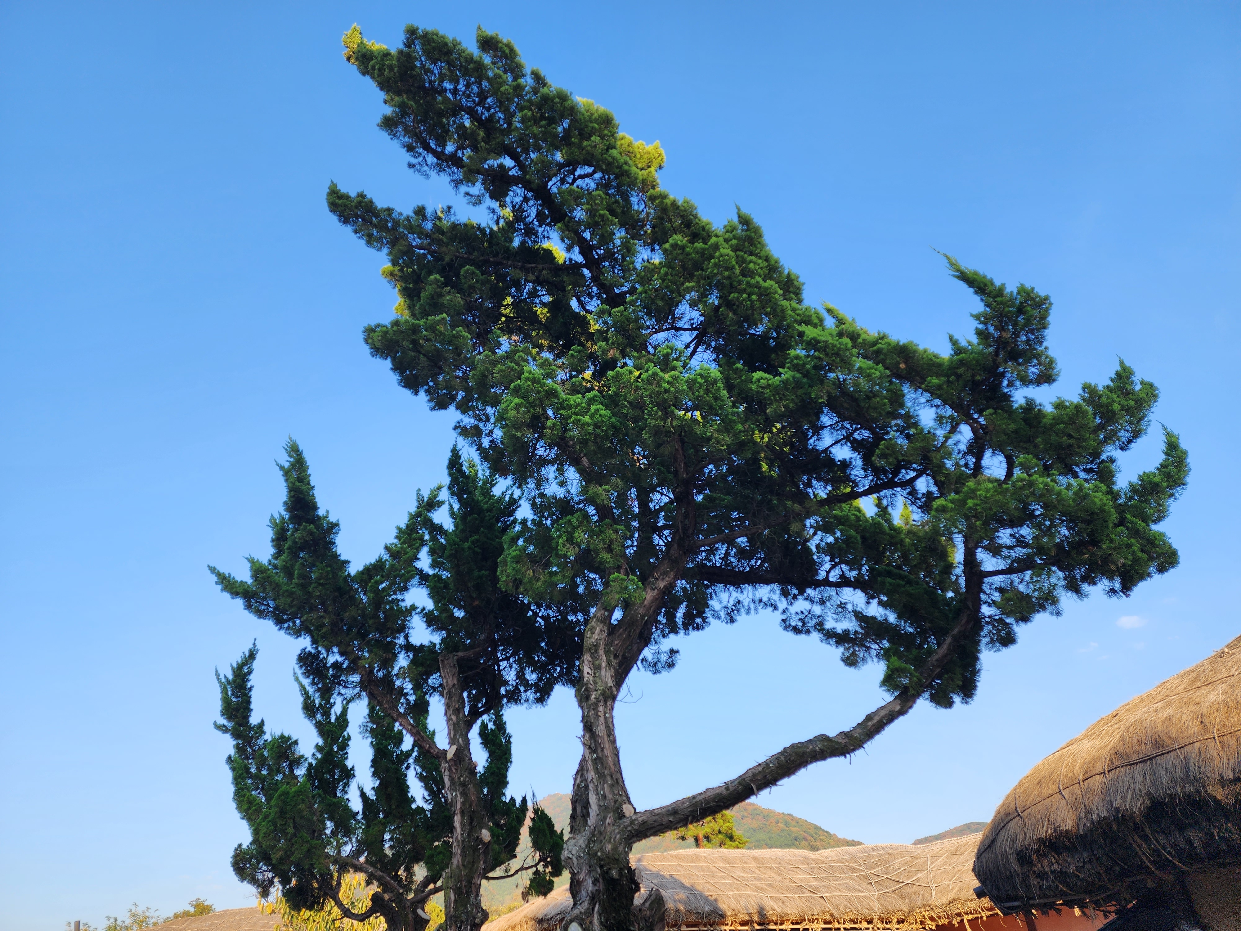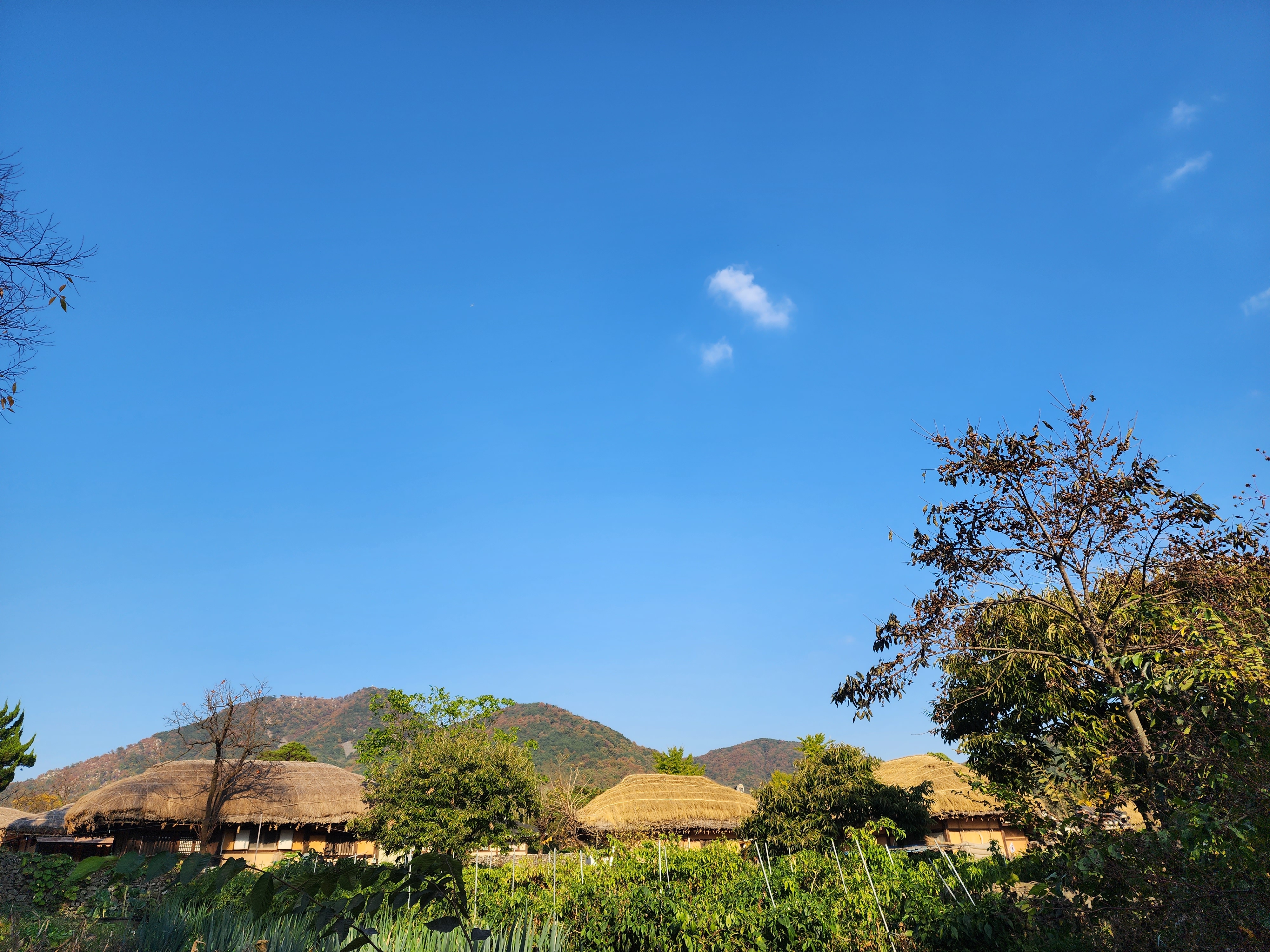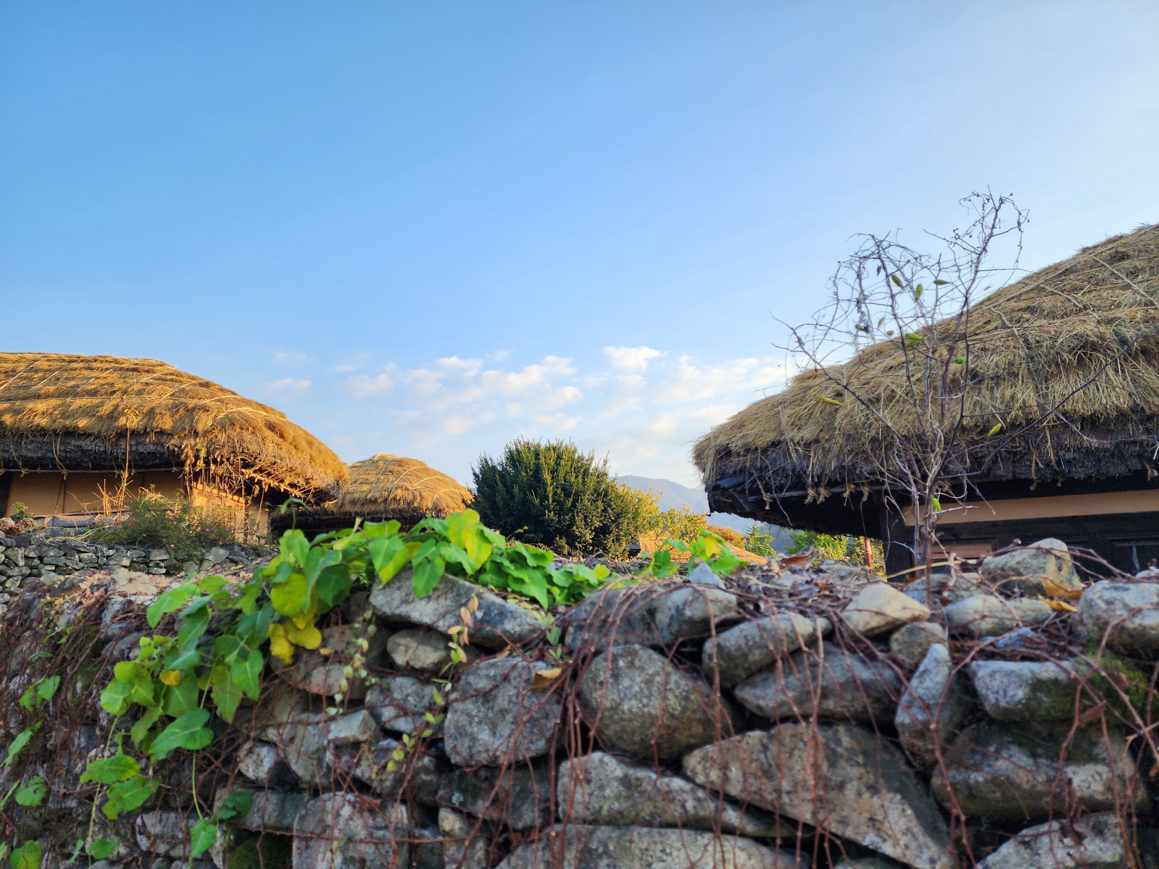 마을 안으로 들어가면 커다란 나무와 옛 초가집이