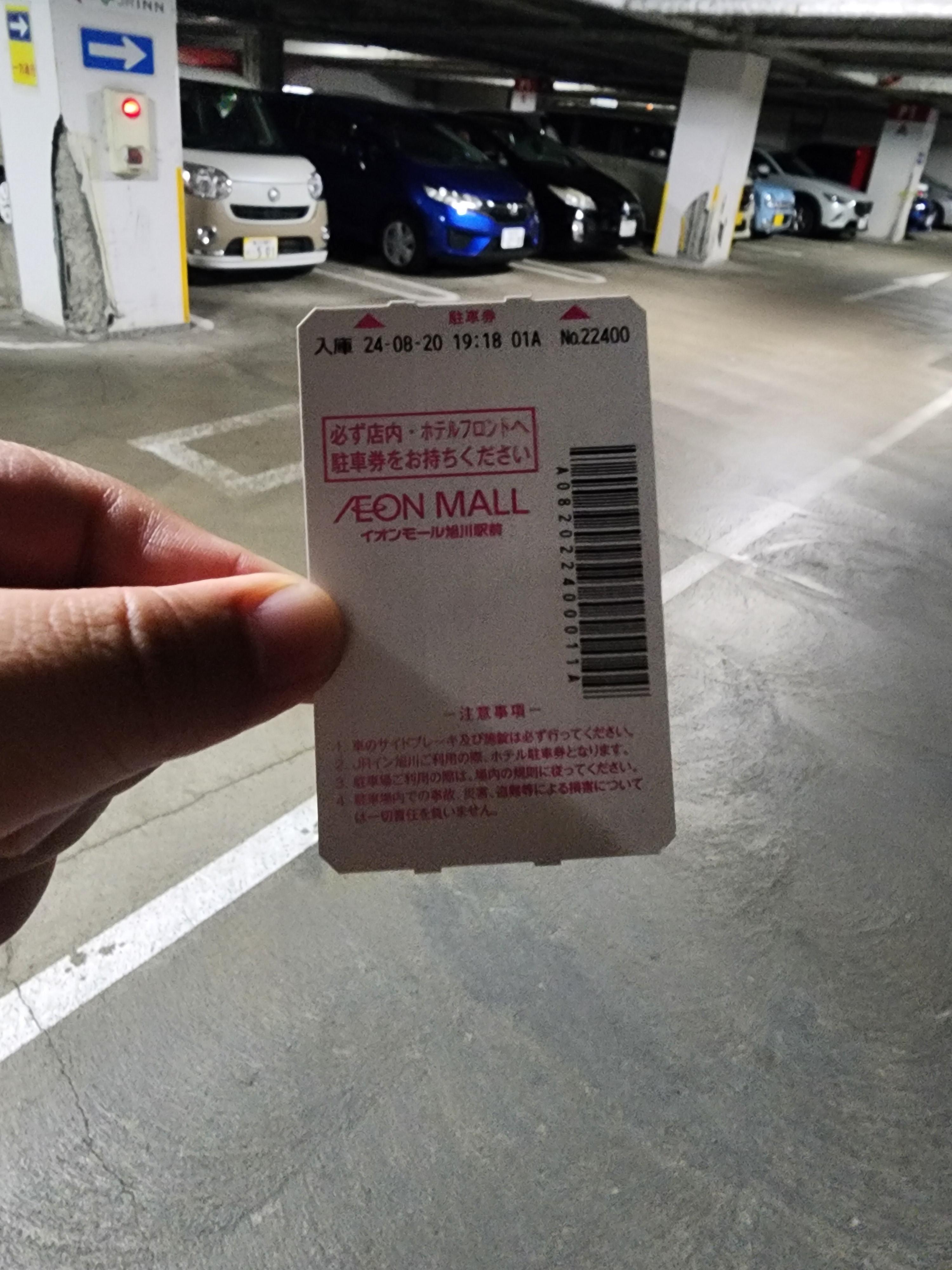 이온몰에 주차를 하고서 주차권을 가지고