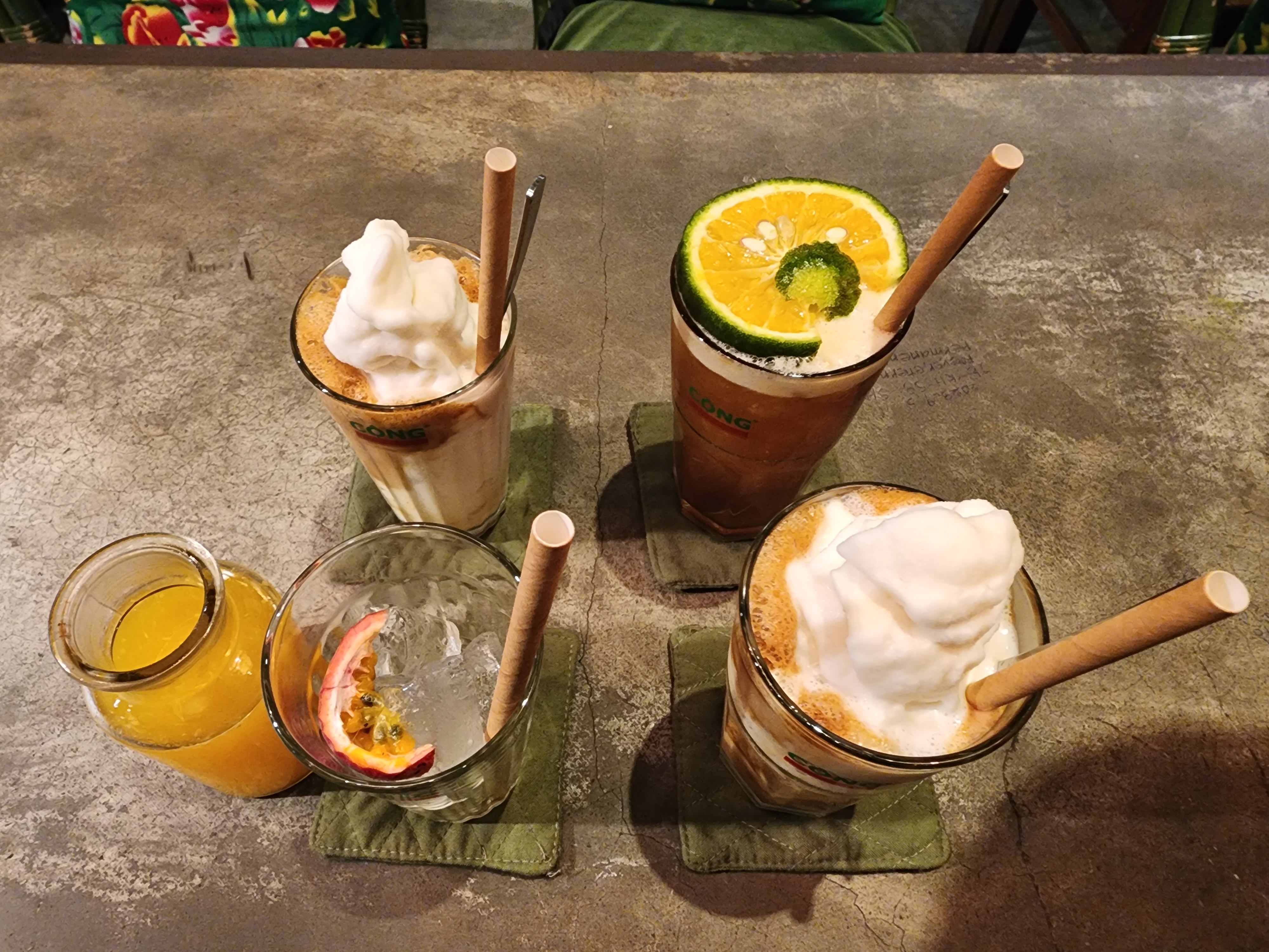 코코넛 스무디, 자몽허니티(?), 패션후르츠 주스 등등